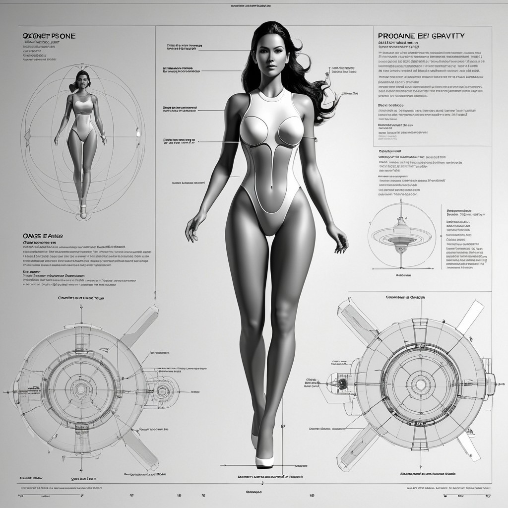 The image features a stylized, detailed figure of a female character, showcasing various perspectives and a wireframe overlay, emphasizing a blend of realism and digital design elements.