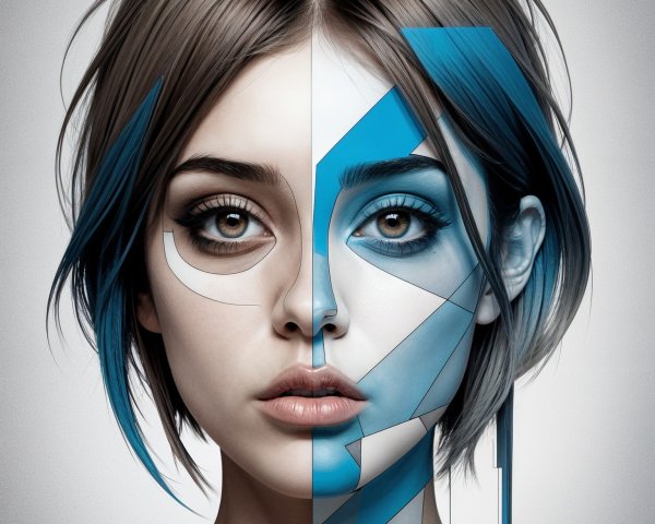 Surreal Landscape with Red Pathway and Oversized Mushrooms