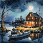 In a whimsical, surreal landscape under a moonlit sky, two characters stand on a vibrant, fluid ground, surrounded by ants and a stark tree, evoking a sense of intrigue and mystery.