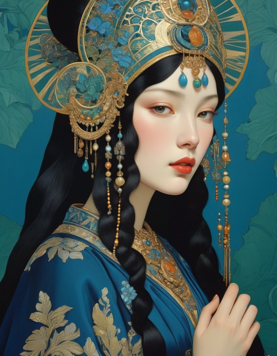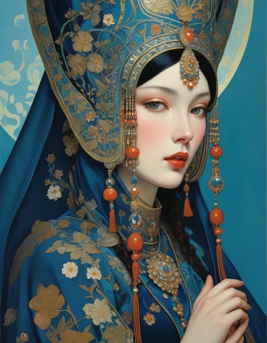 Ivan Bilibin, flat color, dirty color, hot tones, perfect body