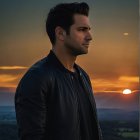 Silhouette of a Man Against a Vibrant Sunset Sky