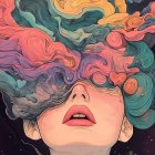 A dreamy, surreal artwork featuring two ethereal female figures with ornate crowns, surrounded by whimsical elements like rabbits and colorful cosmic orbs, creating a mystical atmosphere.