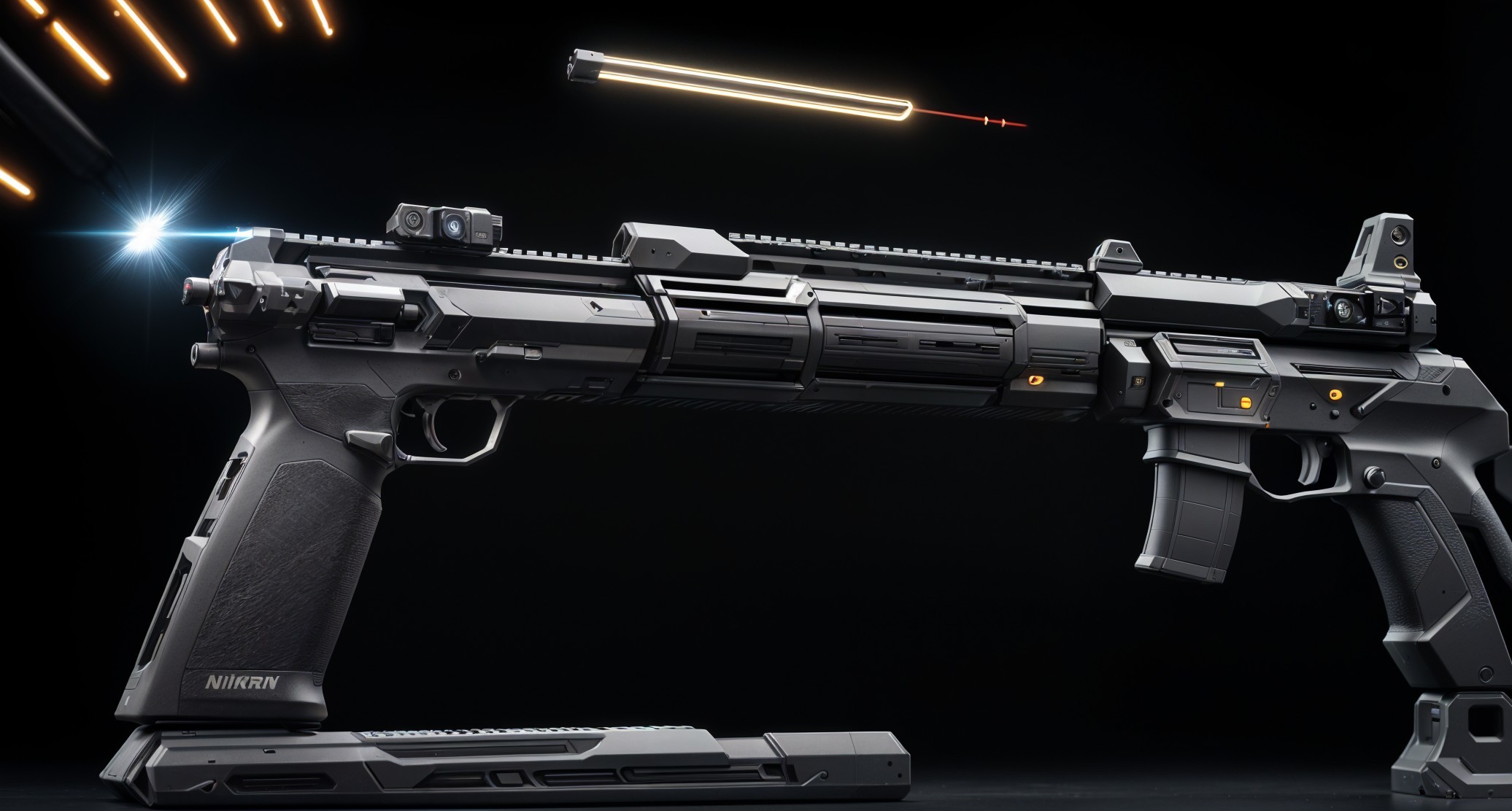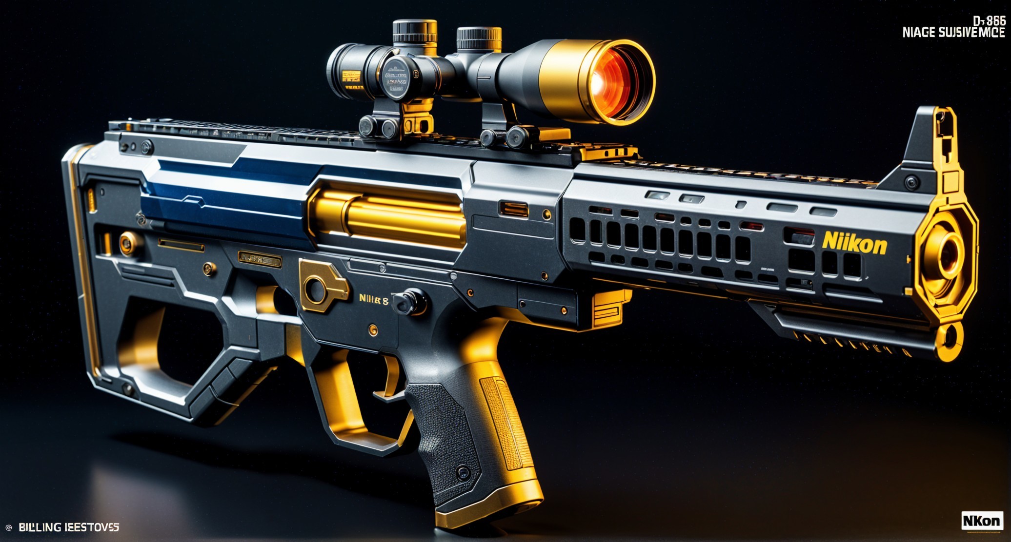 Prompt: "Futuristic laser assault rifle, bullpup layout, advanced optical device, energy ammunition magazines, terrain surveillance equipment, Nikon D850, digital painting, elegant design, studio lighting, 8k resolution, cyberpunk aesthetic, hyperrealistic details, ultra-detailed depiction, crisp quality, focused composition, golden ratio, dark palette, atom-punk macabre tones, silver and sapphire reflections, light and shadow interplay, sci-fi ambiance."