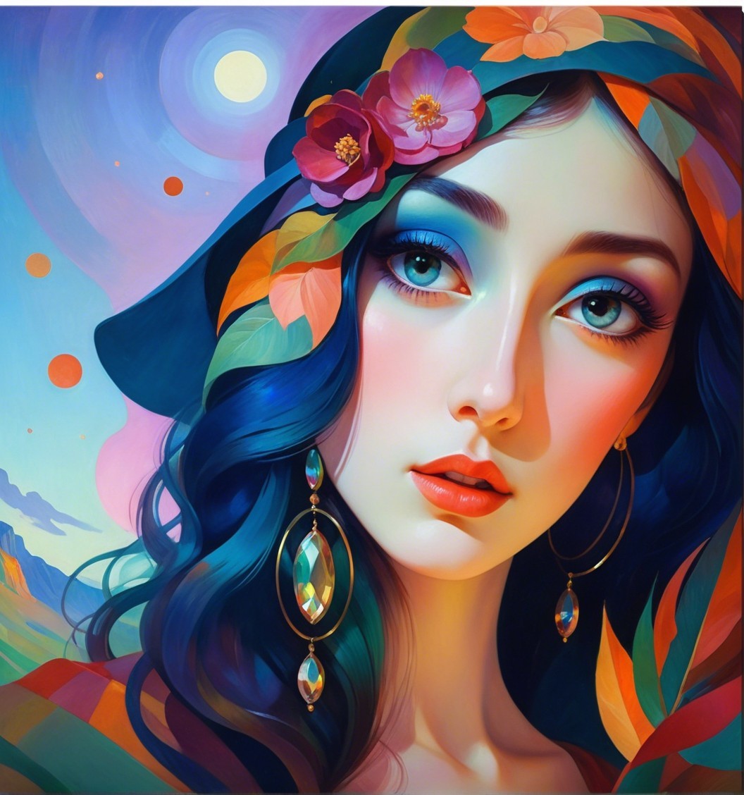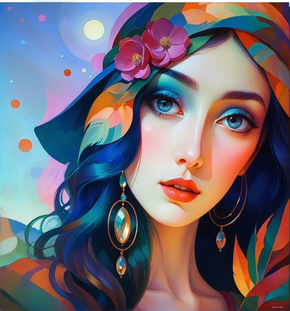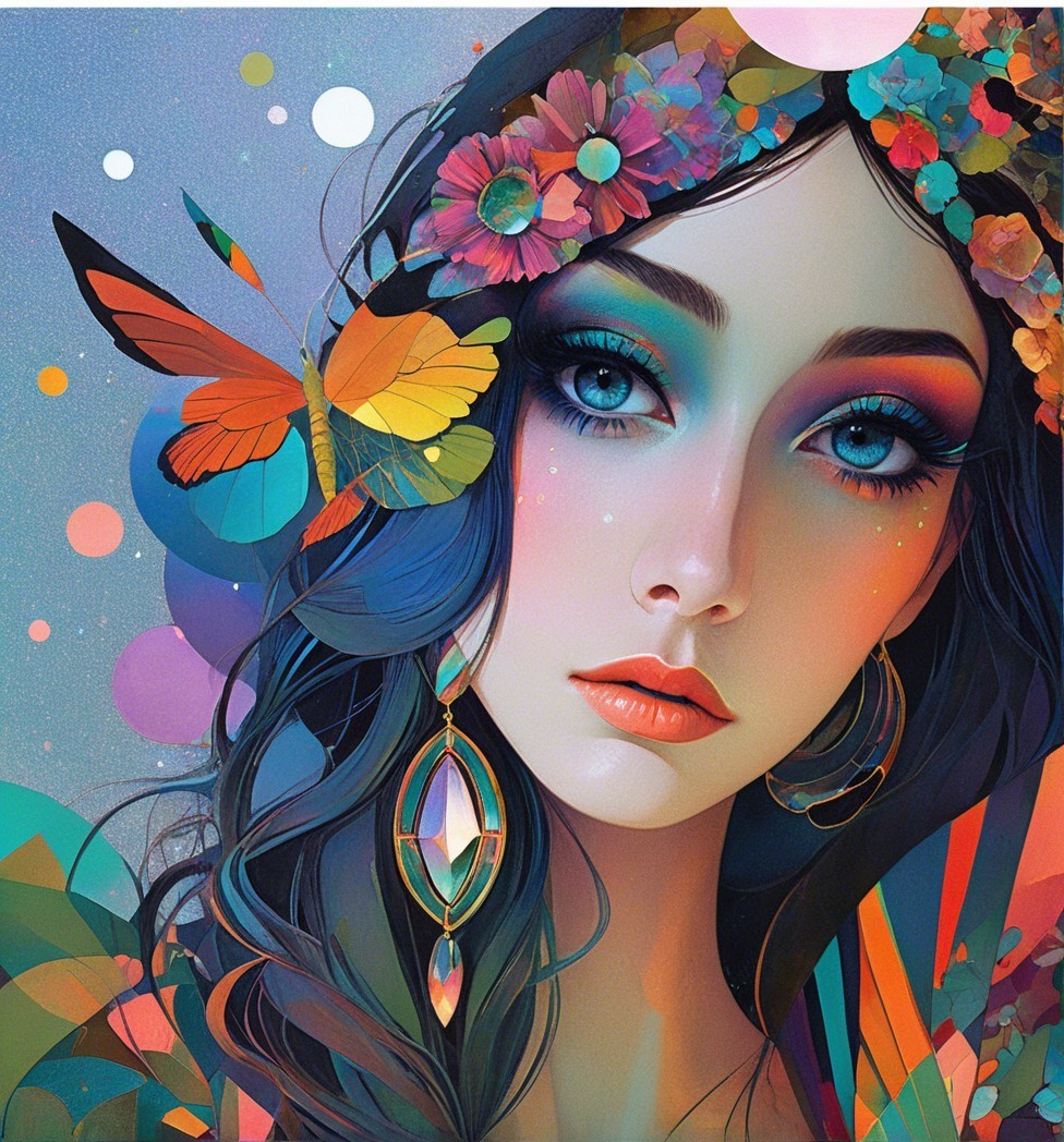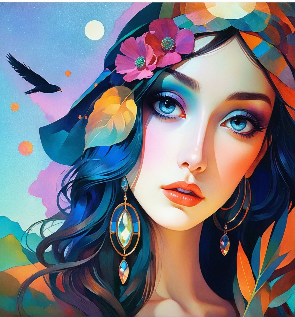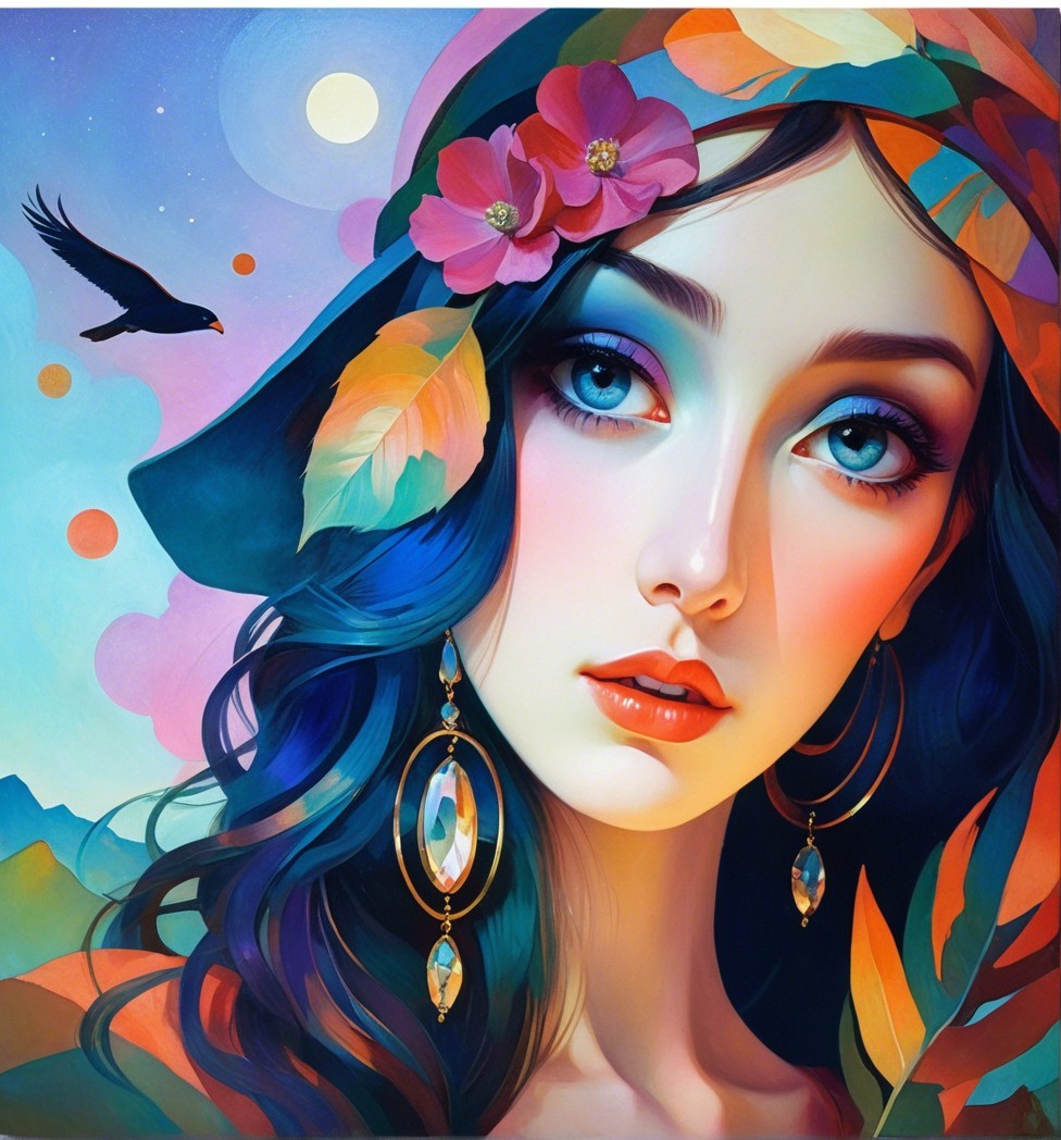 Enigmatic dreamscape, stylized complex portrait by Boris Michajlovič Kustodiev and Freda People, ethereal ambiance, emotional depth, atmospheric lighting, deep shadows, intricate details, maximalist beauty, contemplative aura, rim lighting, rounded shapes, brightness 1.3, squiggly cel-shaded precision, HDR and UHD resolution, Conrad Roset-inspired embodiment, dynamic lighting, elaborated plasticity, balanced warm coloring, 1990's fashion illustration fusion, divisionism elements, line-art accents, symmetrical composition, foampunk and indiecore fusion, warm color palette, subtle 3D effects, detailed textures, dramatic shadows, embossed, liminal features, asymmetrical composition, abstracted headshot, dual exposure technique, abstract lines, partially contoured, blurry ethereal atmosphere, Kintsugi-inspired style, superpunk, grunge, strict edges, plasticity 1.5, negative lucas numbers, only curves for technical issues, unfinished, quivering, metallic paints in close-up detail, intricate glimmer patterns, dramatic flair, Elfi Cella's contemporary touch, Ed Binkley influenceeerie yet captivating, dreamlike aesthetic. overall composition by Ed Binkley.
