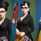 The image features four stylish women in various outfits, showcasing a mix of colors and designs, with expressive faces and a modern, elegant aesthetic. Each character has a distinct pose and expression.