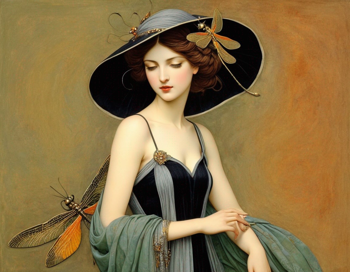 + Prompt:Melissae. Nymph of dragonflies. 3rd century Persian miniature art, golden ochre, silver, sage green, dark yellow, paprika, Velvet Black, Shabby, Dull Gold, Amber Gray, Golden Ratio, Surreal Fantasy, Elegant, High Definition Ultra Fine 3D Line, Zenangle Style, Watercolor Patchwork , Arthur Rackham Style, Paul Kidby, , Jacek yerka, Extremely Detailed, Intricate, Thoughtful, HDR, Fractal, Beautiful, Award Winning, Fantasy Look, Fantasy, Crisp Quality