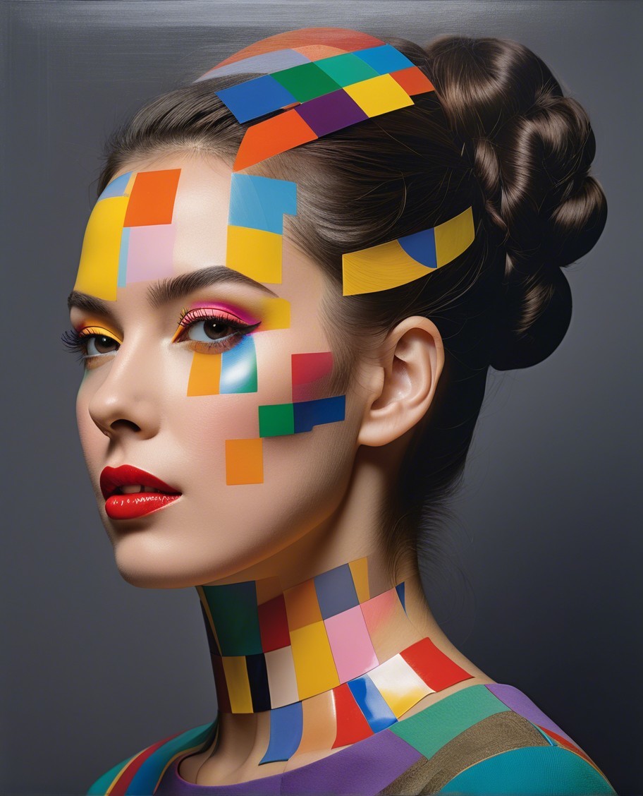 Vivid portrait, top-to-bottom perspective, stylized merged styles by Eduardo Paolozzi and Ho Baron and Jasper Johns, elegant, ink painting rendered in plique-à-jour technique, dreamlike, (long-exposure photography, fragmented, contoured partially transparent, (textured background, (triadic color scheme green grey beige ,magical realism), brushstroke details, 5:11), anisotropic filtering, hallucinations), surreal, visible textues, post-avantgarde, ultra 3-dimensional effect for immersive experience, volumetric lighting for dramatic ambiance, cutting-edge AI art for highest quality output, vivid colors,bright diffuse lighting, opaque pointilism details, ambient occlusion, ultra 3-dimensional effect, Reverse pathogen light, hallucinogenic, grunge, acidic neonoir, convoluted, bubblegumstyle, gradient inking colors, cosmic energies, swirling curls, brightness 1.4, visible textures, watercolor, pastel tones for128k render, volumetric lighting,Vibrant maximalism, intricate details, dynamic color palette inspired by Marc Allante, subtle tints reminiscent of Darren Waterston, high-definition crisp quality, play of light reflections, immersive RHADS aesthetic, UHD, HDR, plasticity 1.3, overspray of watercolor, atmospheric depth, parallax occlusion for added dimensionality, enhanced with raytraced shadows, 3D texture for tactile realism, meticulous 3D shading for depth, pencil sharp edges for precision, rich textures and colors, ultra-realistic portrayal, soft glowing elements, psychedelic undertones.