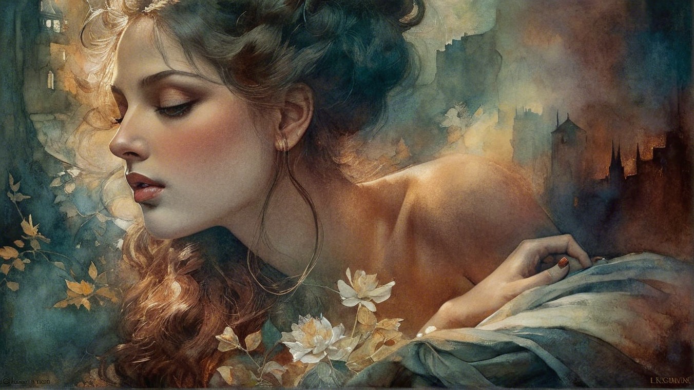 Ancient cities, ancient tales. Ancient spirits Beautiful exotic woman. Arthur Rackham Paul Klee Norman Rockwell anatomically correct Steve Hanks muted tones symmetrical face Ochre Big brown eyes Subdued palette wide open dark eyes Symmetrical eyes, nose and mouth moody, somber, desaturated colors Soft, somber, delicate Soft dappled lighting. Golden hour. Leonardo, Durer, Schiele, Degas, Mondrian - mixed media surreal Richard Burlet celestial Enki Bilal dynamic pose Esao Andrews enigmatic dreamy atmosphere susanne Jamie Heiden cosmic splendor Surreal dream In the darkness I dance