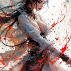 A beautifully illustrated woman in an ornate dress, adorned with vibrant colors and intricate patterns. Her flowing hair and captivating expression exude grace and elegance amidst a dreamlike backdrop.
