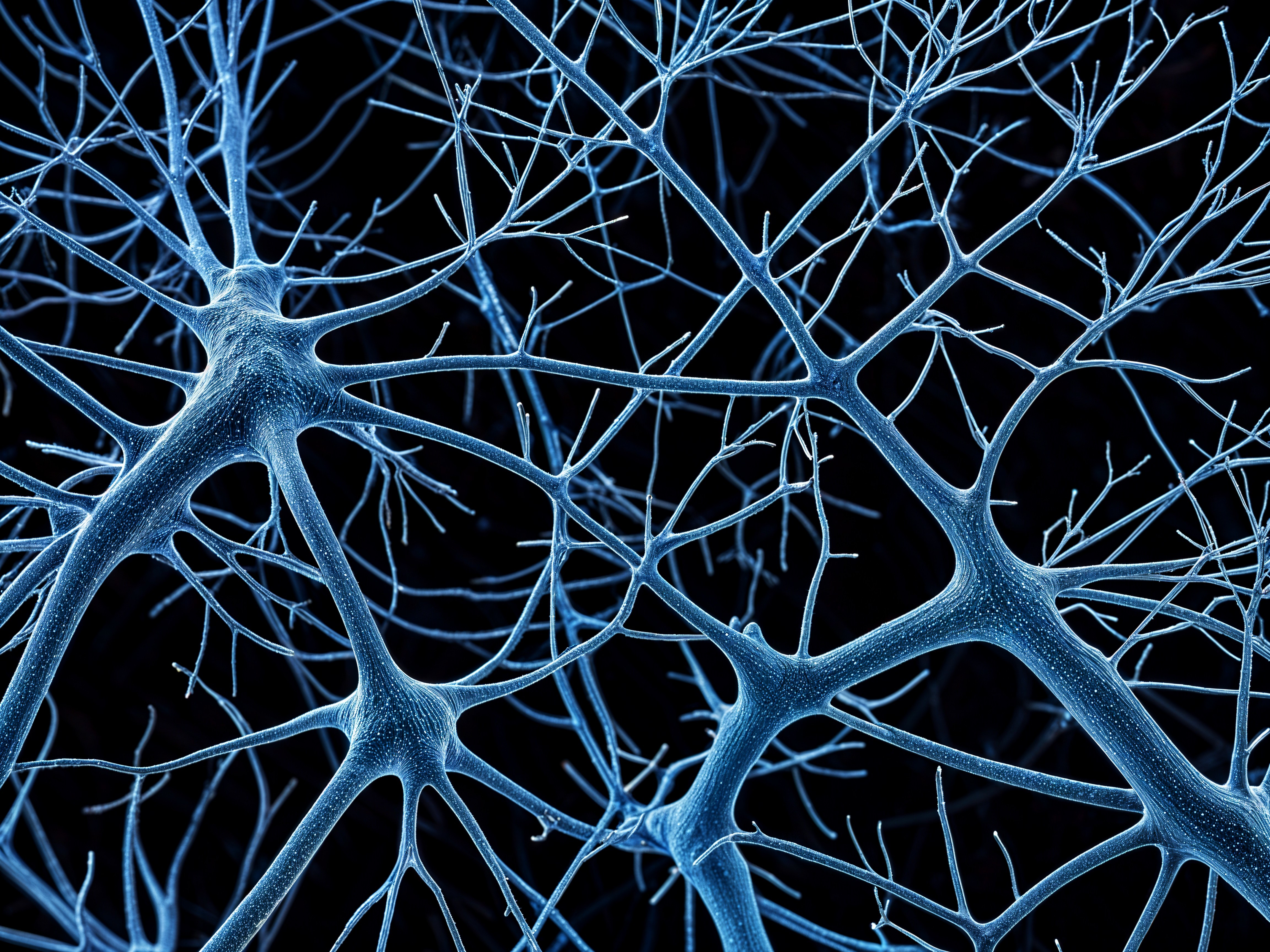 The image depicts a close-up view of a neuron, highlighting its intricate network of branching dendrites and glowing synapses, illustrating the complexity of neural connections.