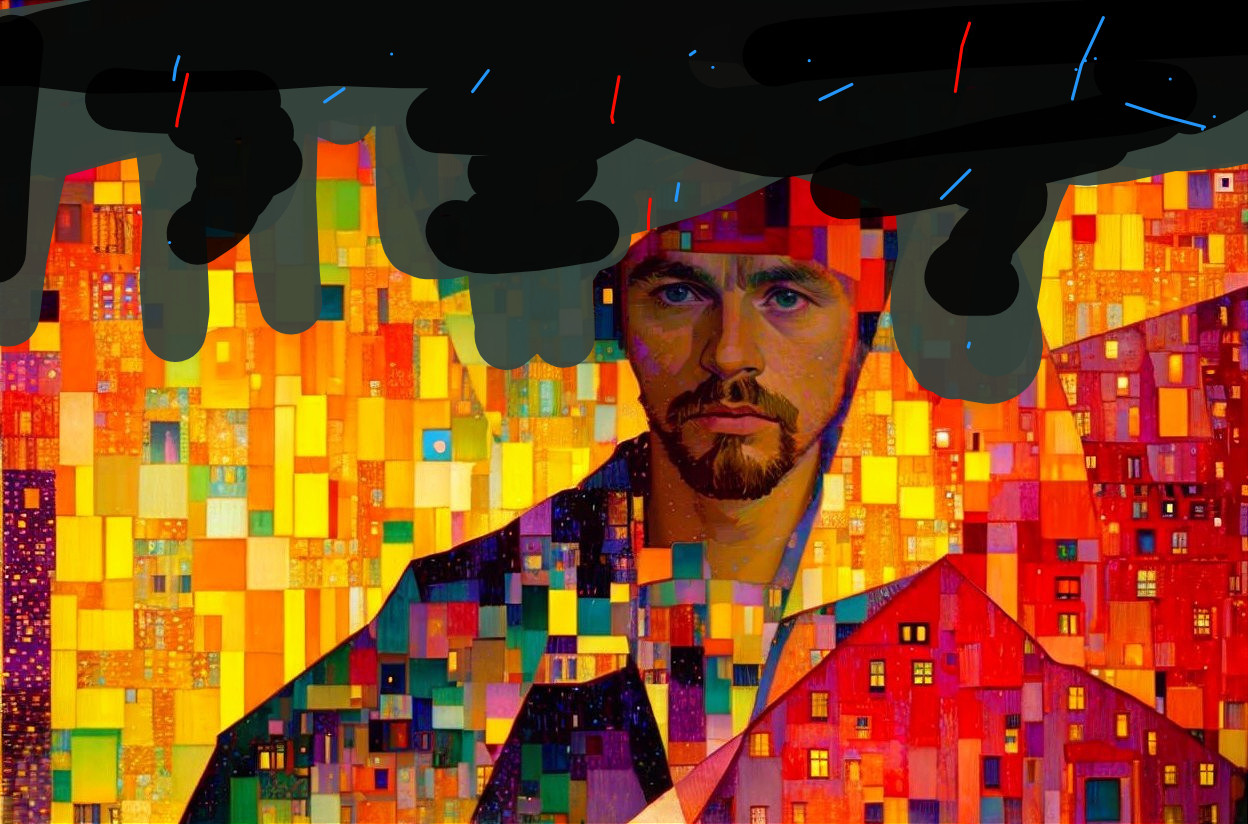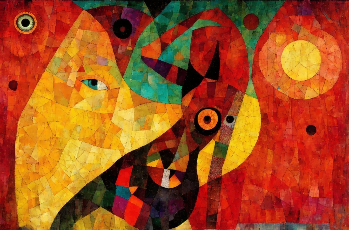 + Prompt:Female shaman. Evil eye levitating. Paul Klee inspired, a mix of photorealistic Dave McKean art collage and absurdism. made of paint and newspaper clippings.