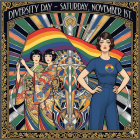 The image features three women representing diverse cultures, each in unique outfits. One holds a rainbow flag, while another wears a colorful t-shirt. The banner announces "Diversity Day."