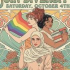 The image features three women of diverse backgrounds, each representing unique styles. They stand together with flowers and a rainbow flag, promoting a "Join Diversity" event on October 4th.