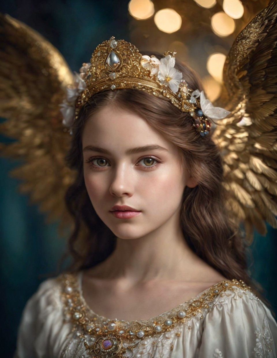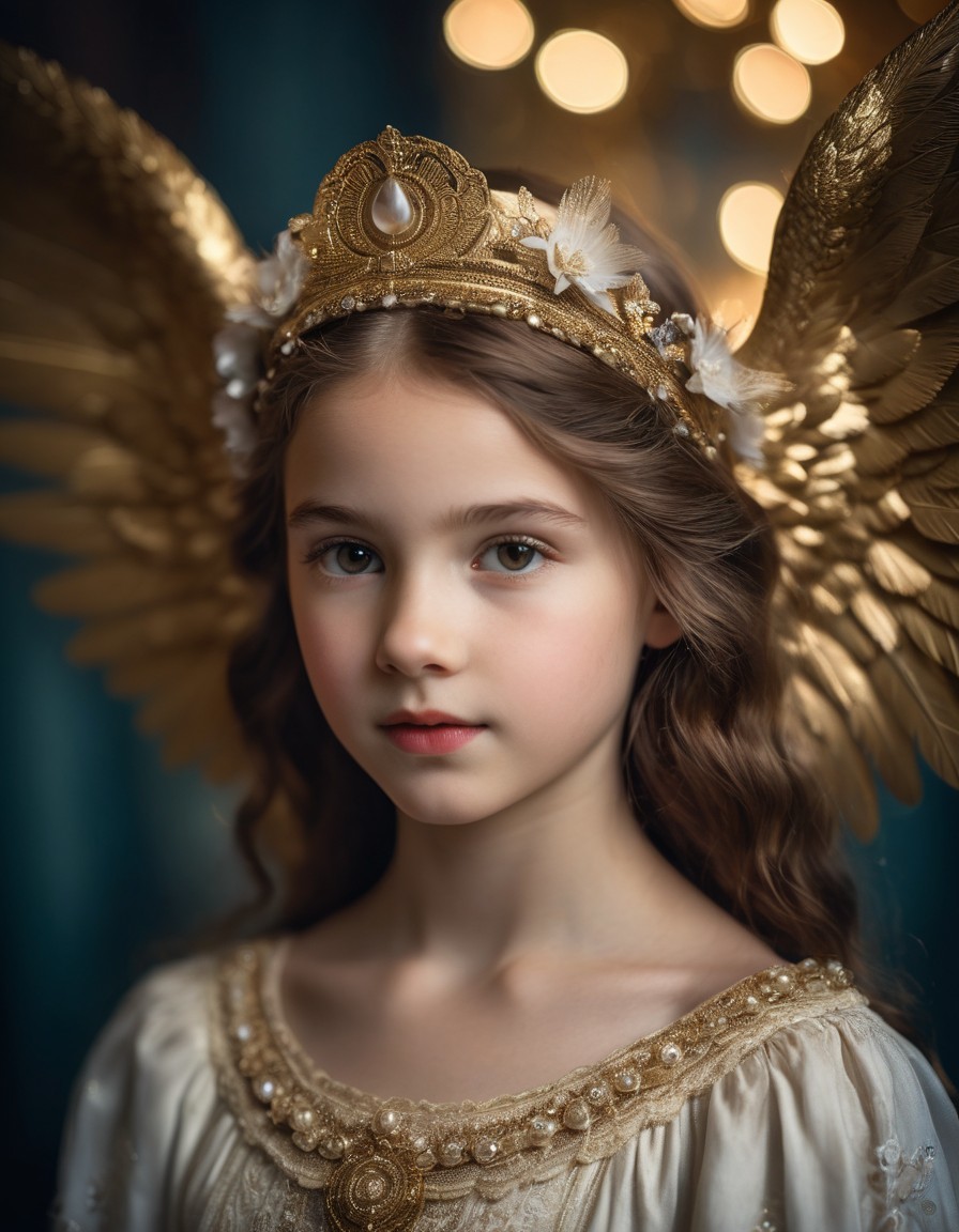 Prompt: "151515: [Portrait of an anthropomorphic "Ark Angel" girl in the artistic styles of Vicky Knowles and Edward Hicks {capturing intricate details and textures through the lens of analogue photography, bathed in cinematic lighting with a soft bokeh background, creating an irresistible visual narrative, scientific photography}]"