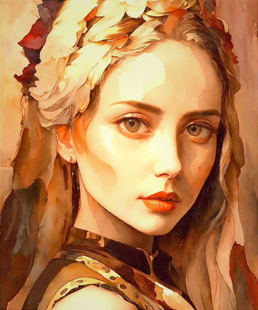Baroque painting, tints of watercolor and ink, oil on canvas, mosaic, portraiture, stacked-up perspective, plasticity 1.6, anisotropic filtering 1.9, raytraced shadows 1.8, high coloring 1.9, fauvistuc cuts, mosscore 1.7, cottagegore 1.9, triadic color scheme beige ochre amber, vibrant luminous strokes, grain, Schregerlines 1.7, hues, plasticity1.9, complexion1.4,