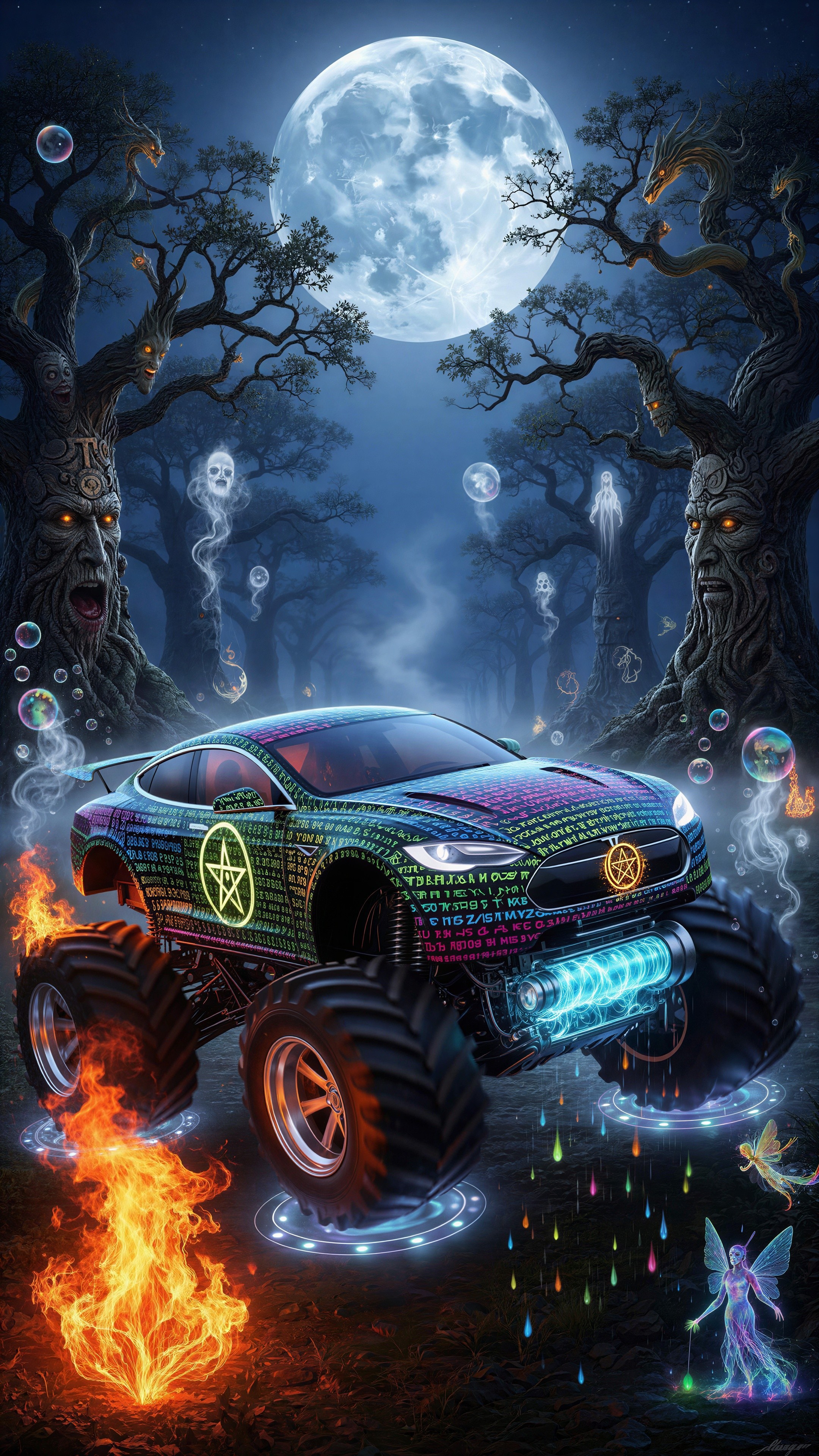 Jarod Kent Simpson art Tesla Zombie Apocalypse Roadster Monster Truck