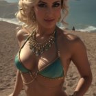 A woman poses confidently in a sleek black dress, showcasing a stylish and bold look. Her hair cascades softly as she exudes elegance in a modern, chic setting.