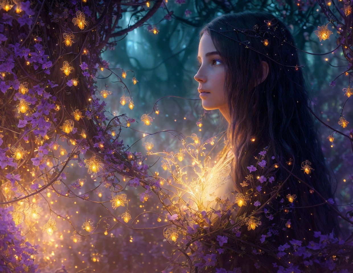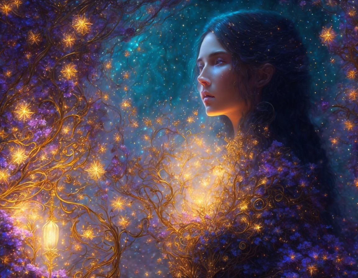 Epic cinematic stunning intricate meticulously detailed dramatic atmospheric maximalist digital painting masterpiece, conjuring twinkling stars with a magic wand. filigree, vines, flowers, fireflies, tendrils, mystical night, art by Yoann Lossel, Yigal Ozeri, vibrant colours, volumetric lighting, magical, rays of moonlight fall through the leafy canopy, kawaii, fantasy, perfect face, perfect nose, jeans, misty swamp background, dynamic lighting, intricately detailed acrylic art by Jenny Saville, Alena Aenami, Johan Grenier, Kilian Eng, crisp quality