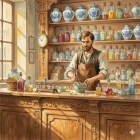 Bearded Man Mixing Ingredients in Vintage Apothecary