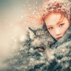 A young woman with flowing blonde hair is draped in a delicate, translucent scarf. Her serene expression and soft, ethereal background create a dreamy, almost otherworldly atmosphere.