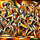 A vibrant dance scene features a group of women in colorful dresses, moving joyfully against a backdrop of swirling, bright hues. The energy is lively and celebratory, capturing a moment of happiness.