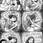 The image features a young woman with striking red hair, styled in a playful manner. She poses on a textured surface, wearing a black shirt and a pleated skirt, with a subtle, whimsical expression.