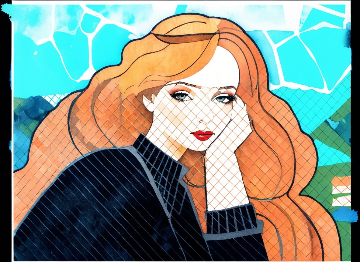 + Prompt:headshot portrait, intricate sgraffito by Niko Pirosmani and Mikhail Vrubel, watercolored book illustration, thinned paint splatter and wet ink effects, indiecore illustration style, contouring outlines, pastel color palette, stencil-style merging with cubism, Art Deco and street-art influences, complex lines, warped, simplified shapes for 3d effects, enclosed color shapes, delicate surrounding outlines, enlightened line-art details, plasticity 1.3, linework, contouring outlines by Freda People, merged styles of Mikhail Vrubel & Francisco de Zurbaran & Chaim Soutine, alcohol ink coloring by peter wileman, exaggerated stylization by Jean-Michel Basquiat, lighting by Raoul Dufy, abstract expressionism by Roberto Matta & Hope Gangloff, dyed by Igor Tuveri, hues by John Philip Falter, flabbergasting geometrical stylization 1.8, cracked paper texture, small brushstrokes with defined edges, tiny and lean lines, orphism, abstracted collage reminiscence, fusion of synthetic essence and abstract art, color palette inspired by William Bradley's and Carne Griffith's coloring style, included paper cuts, encompassing textures, embraced linework. stylized artwork, dyed, UHD, HDR, high luminosity, color glitch aesthetics, linework for a warm and balanced coloring by Ed Binkley and Ho Baron, slightly exaggerated features, serious intricate outlining, slightly warped features with geometric detailing, restrained stippled effect, watercoloring, angled, stylized female headshot blending geometrical elements with bold linework, featuring geometrical 3D effects by Stan Lee and Ho Baron and William Bradley, rectangles in pale red hues, deep dark-pink shades, warm tones, asymmetrical color gradients inspired by orphism, biomechanical intricacy, embodying a delicate balance between stylization and geometrical precision, whimsical style, anthropomorphized, weird, chibli, custom_loss: edge, mental, strict, asymmetrical composition with flowing light, slightly warped, parallax occlusion, foreground with a phong shading of 1.4, abstract brushstroke art, asymmetrical elements by Catrin Welz-Stein, intricate, elegant, highly detailed, digital painting, concept art, smooth, sharp focus, illustration, debeh, bokeh, mip mapping, phong shading. Emphasize the fusion of fantastical coloring and asymmetrical aspects of the design. Overall composition by Ed Binkley and Ho Baron.