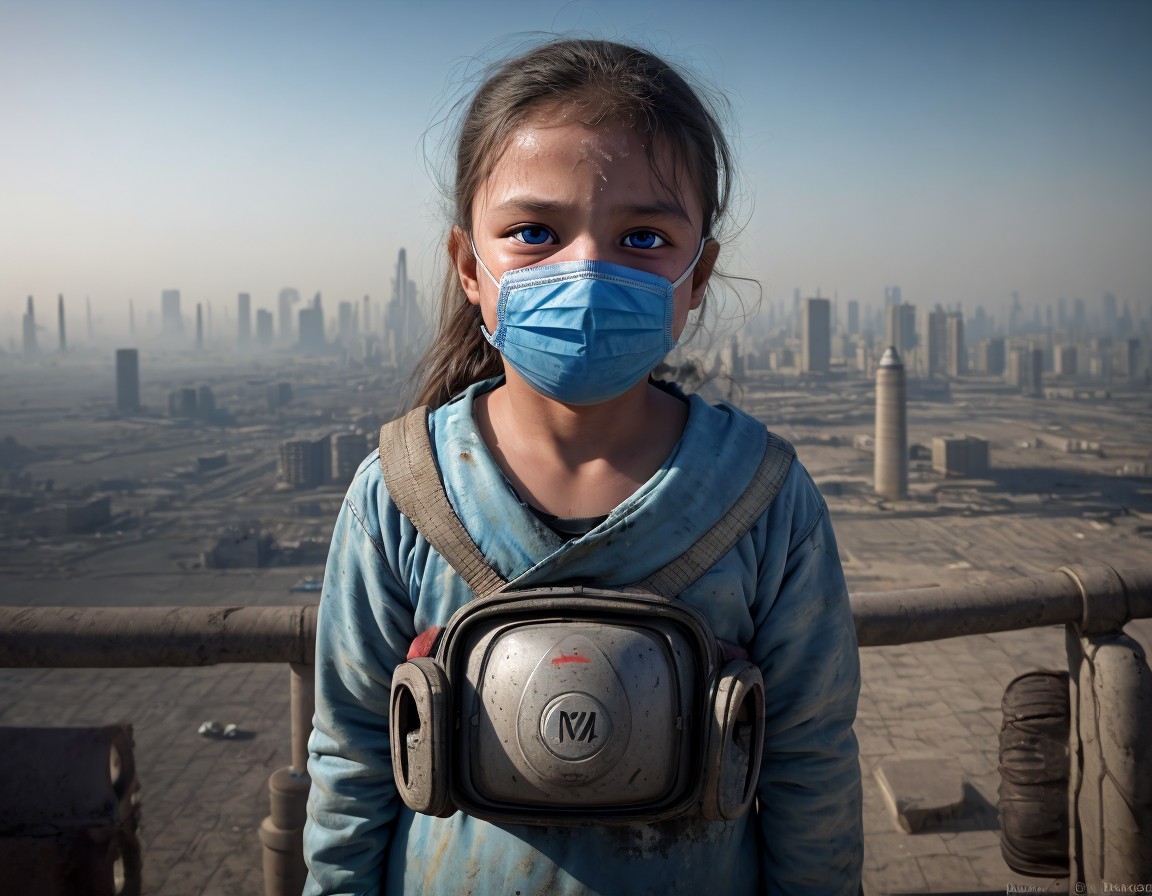 Prompt: "Background: Ultra wide angle image of Air pollution.
