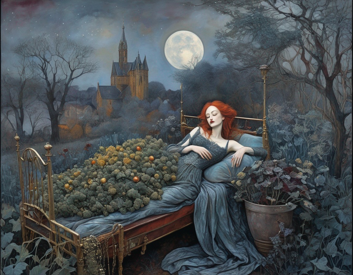 Oh, how wild a night and she's dressed in moonlight - in her secret garden colors kale, gold, rust, burgundy, black.