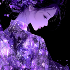 The image features a graceful profile of a woman surrounded by vibrant purple hues and soft, dreamy bubbles. Her serene expression and delicate features create an enchanting, ethereal vibe.