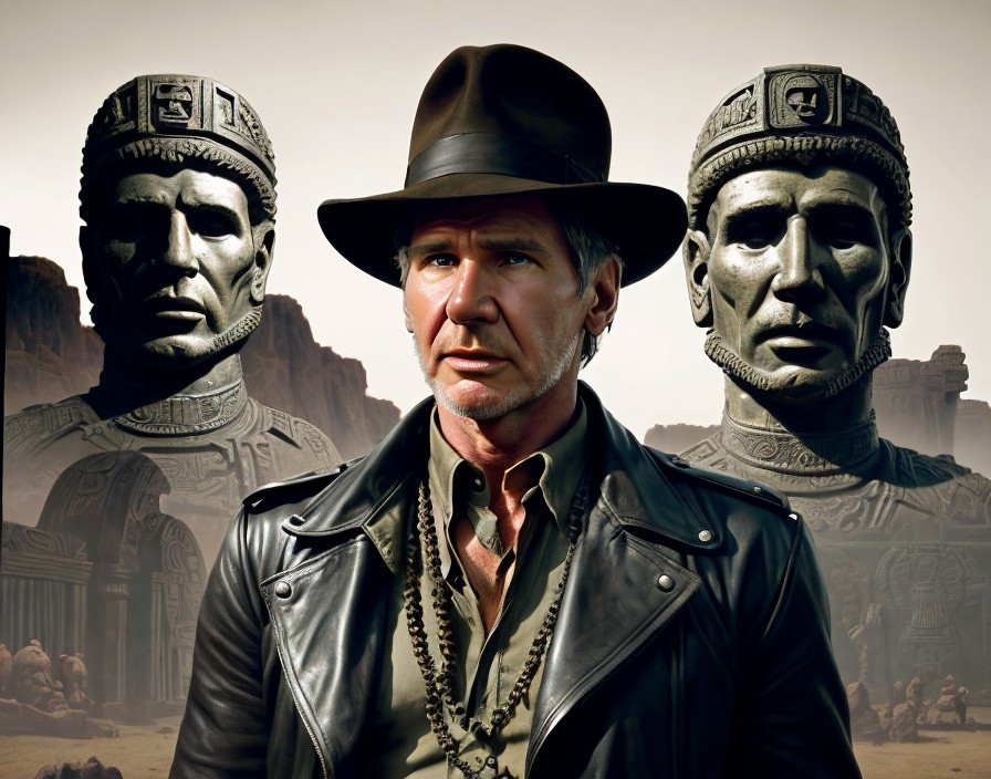 Prompt: "Harrison Ford as Indiana Jones stands in the jungle with the cut off head of Nazi officer, full figure, anatomically correct, masculine, Aztec calendar in the background, format: landscape, style Tara Donovan, eccentric, dark fantasy, a portrait of stile dark fantasy v3, painted in gloomy gothic art, trending on Artstation highly detailed intricate, ominous creepy concept art Dave McKean perfect composition Yossi Kotler, in the style of Zdzislaw Beksinski, fantasy, horror, creepy, highly detailed, (red, brown, black and yellow colors), high contrast, perfect composition"