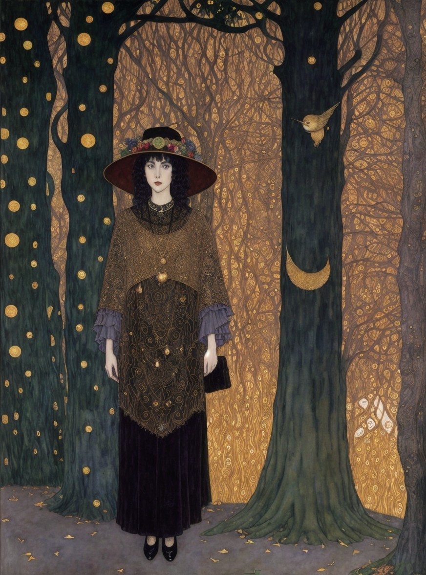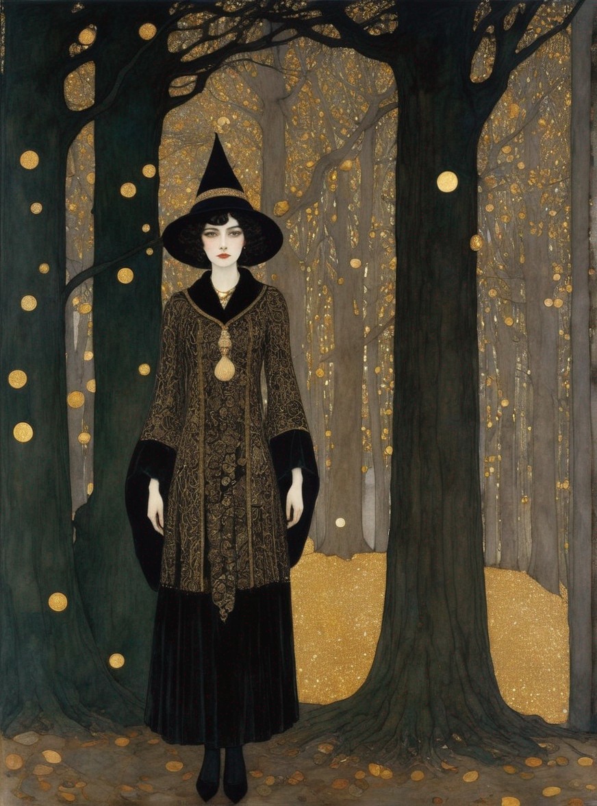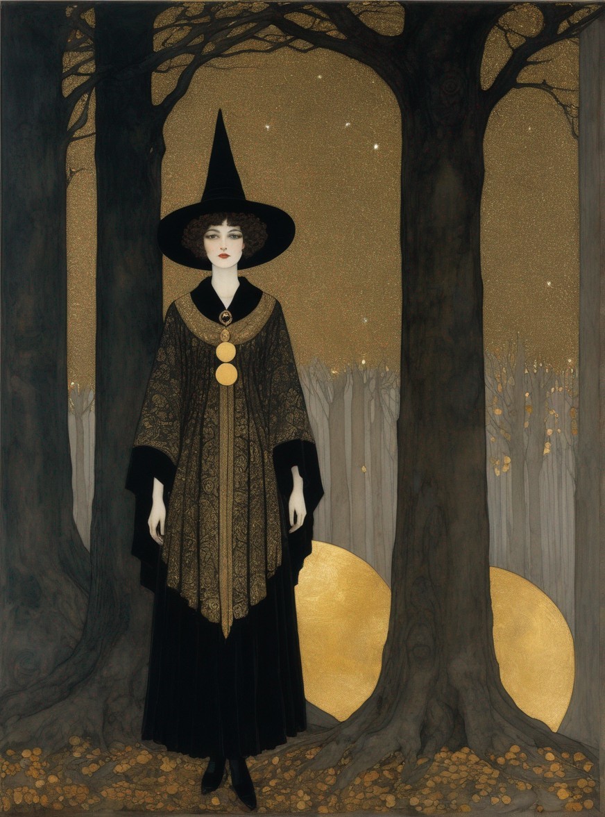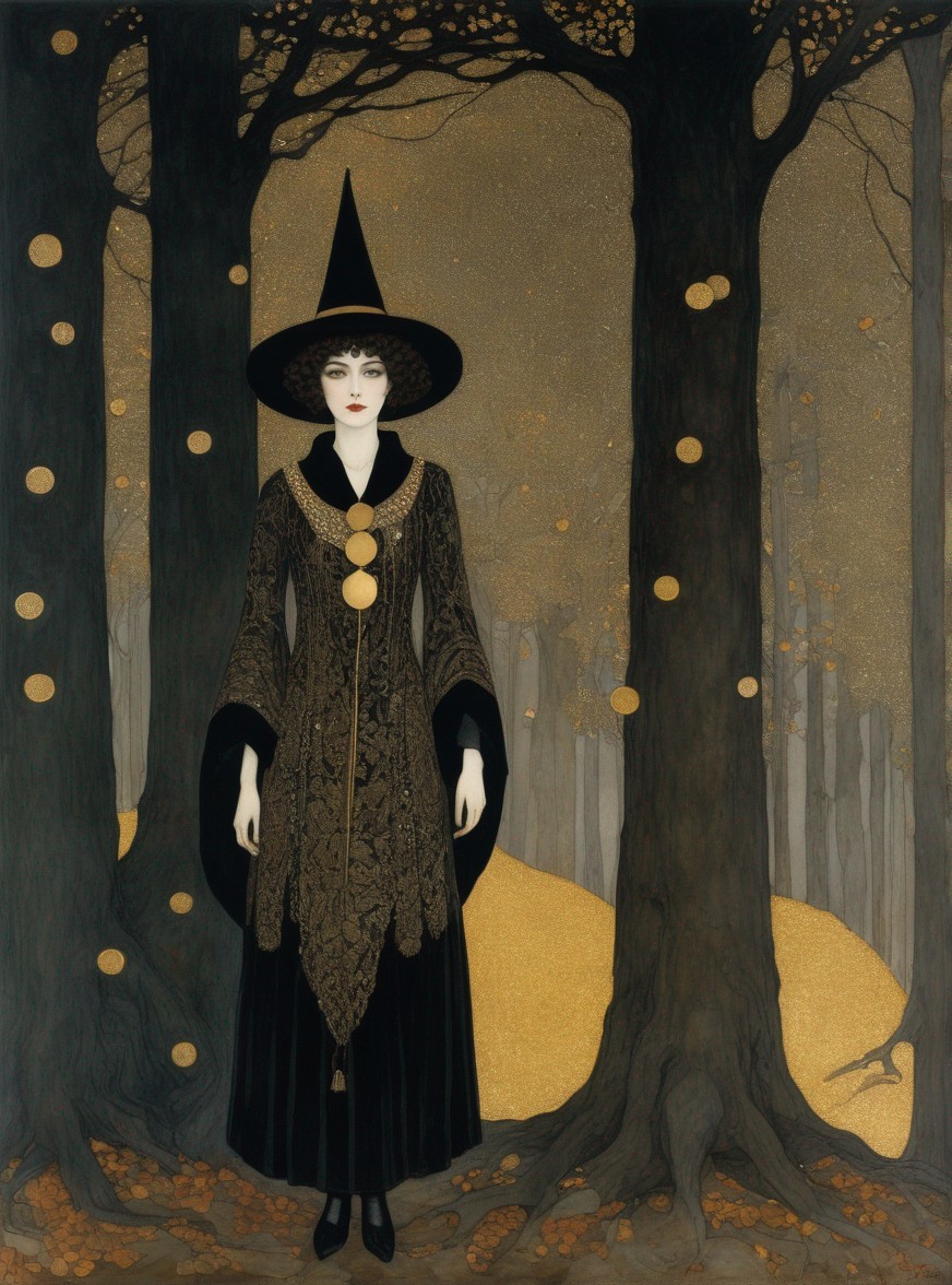 Beautiful benevolent witch. drawing by Edward Gorey.