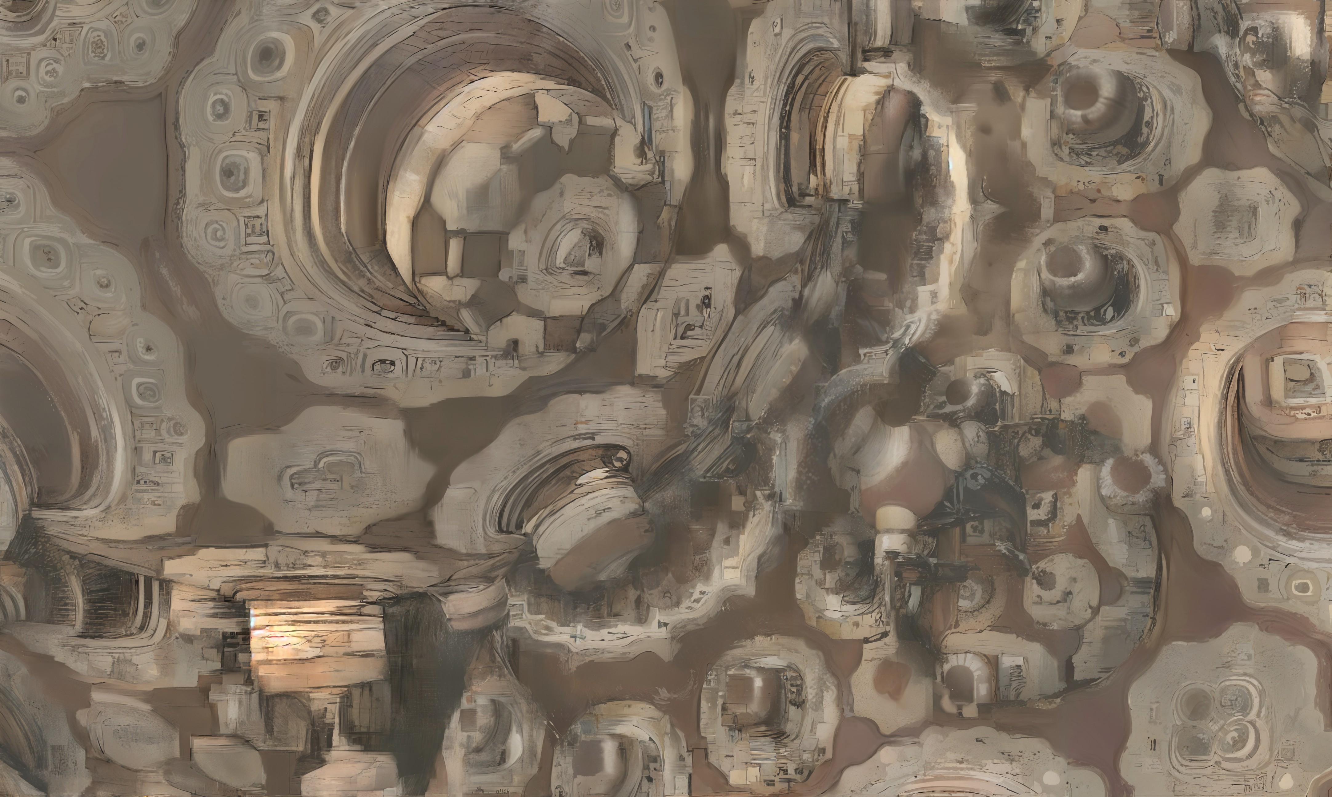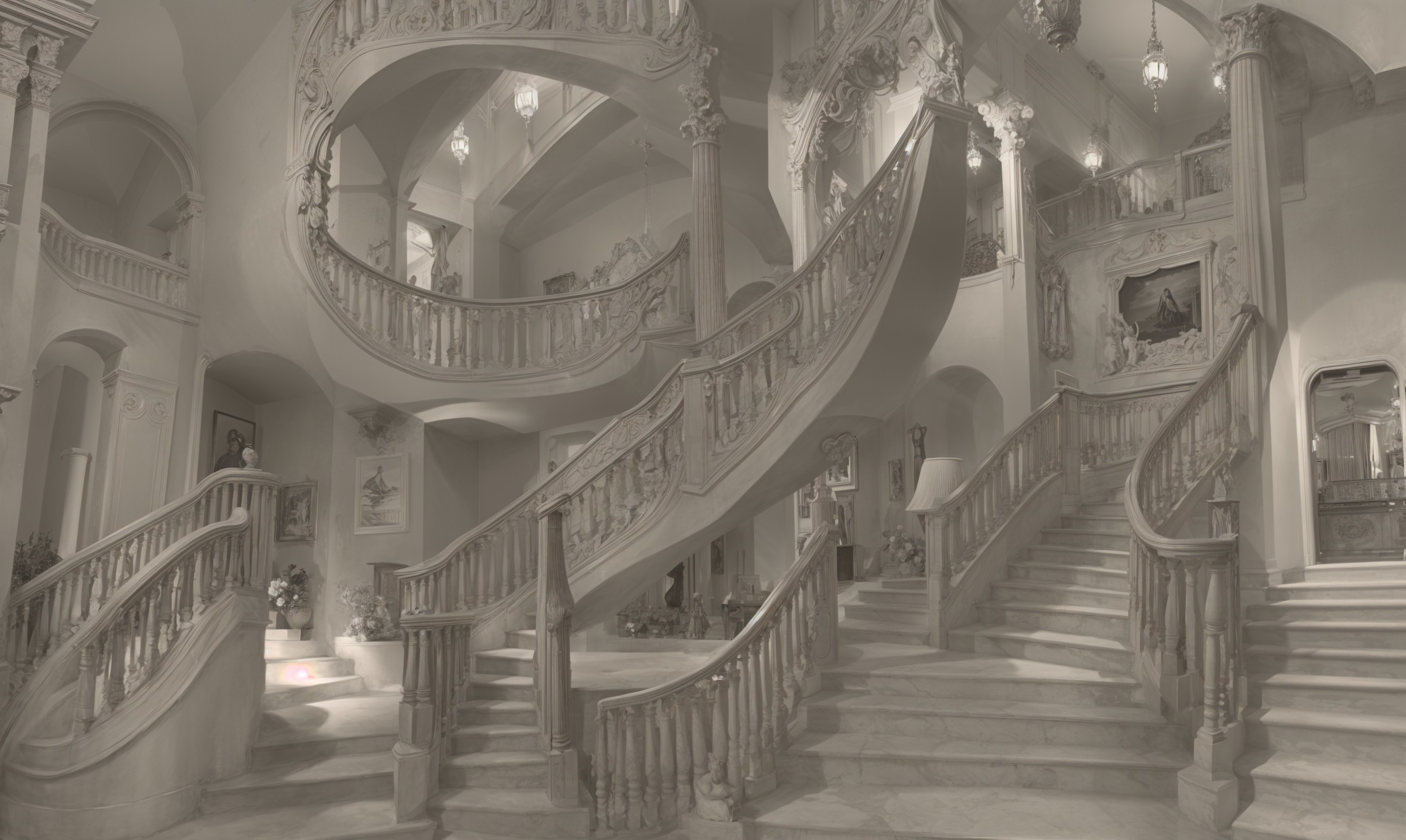 A vibrant, whimsical space filled with colorful patterns and circular designs. The walls and stairs are adorned with art, creating a cheerful and immersive environment.
