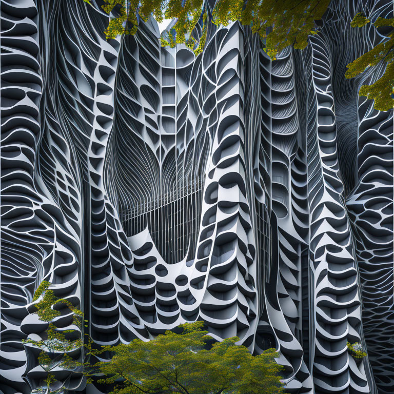 Aubrey Beardsley inspired style Optical illusion of building twisting upon itself, squeezing out human remains, blood, guts, gore