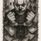 Fierce Clown in a Splash of Colorful Chaos