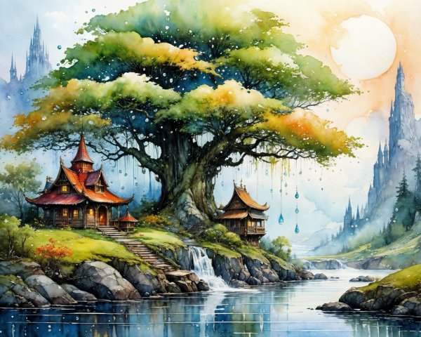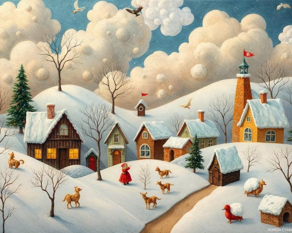 A woman in a flowing orange dress walks towards a dramatic sky filled with swirling clouds, set against a vast, sandy landscape, evoking a sense of wonder and mystery.