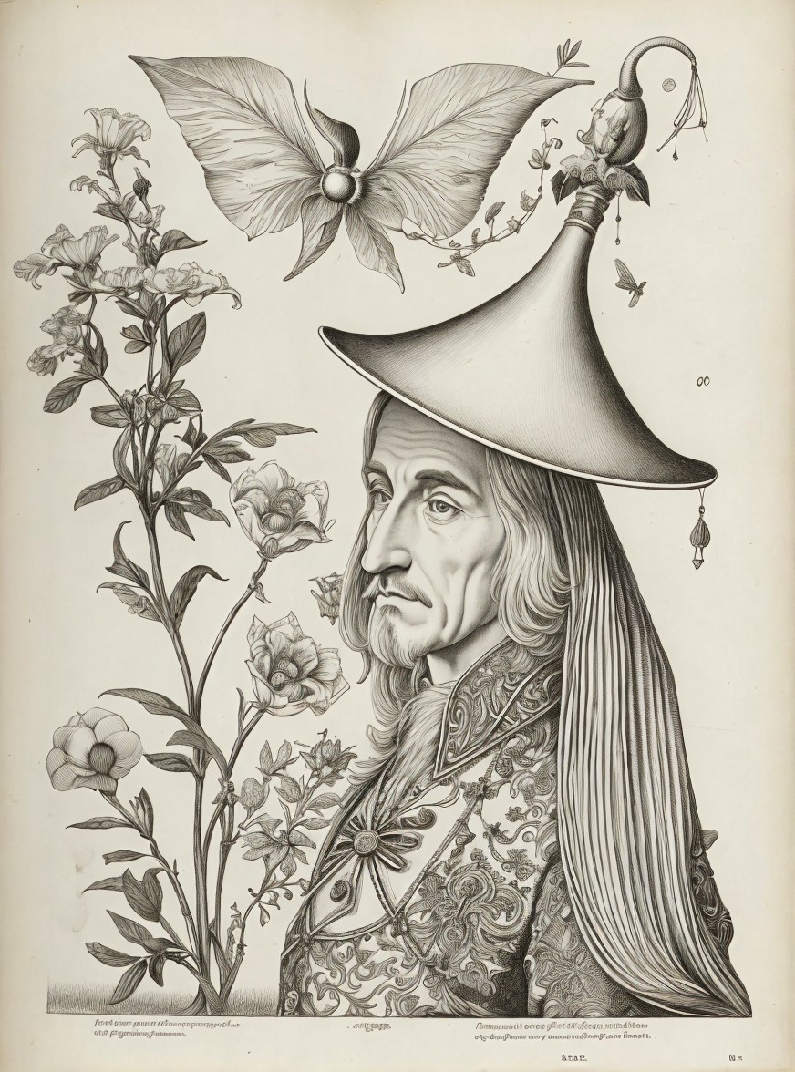 Detailed Vintage Illustration of Woman Admiring Flower
