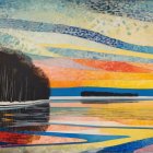 Vibrant Mosaic Landscape at Sunset Over a Lake