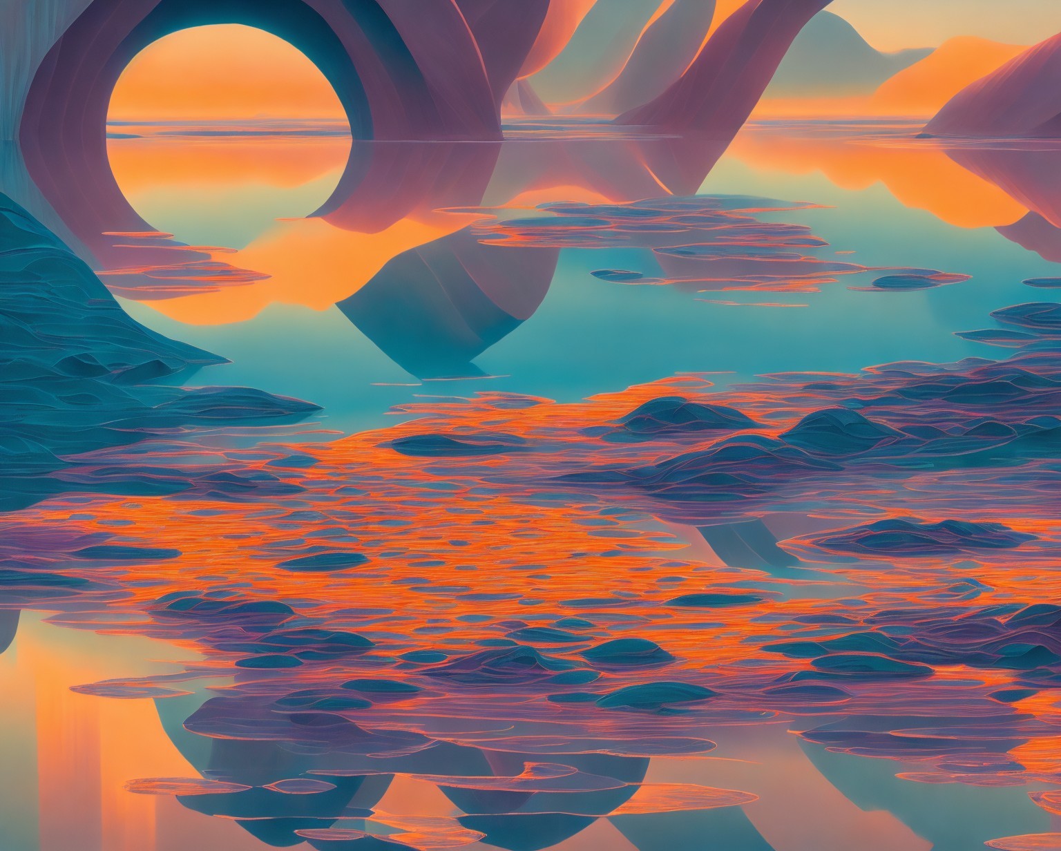 + Prompt:Beautiful teal and grey quilled textured landscape. Surrealism, futuristic, aesthetic.
