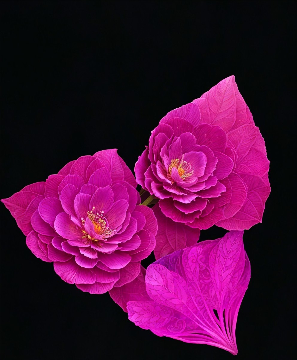 + Prompt:Visualize an imaginative floral garden brought to fantastical life through vibrant watercolors and intricate details reminiscent of zentangles and art nouveau embellishments. Depict a myriad of surreal blossoms with curling, spiral petals in fuchsia, violet, and chartreuse, sprouting amongst dark curling vines and ornamented leaves. Incorporate hypnotic patterns of shapes and labyrinthine lines that weave across flower stems and adorn their edges, centered around elaborate floral mandalas. Embellish the flowers, vines, and leaves with metallic gold filigree borders and accessories like crowns or jewelry nestled into the arrangement. Allow colors to brightly saturate each petal while leucophyll-heavy foliage anchors the ethereal blooms with earthy hues. Blend realism with surrealism, nature with adornment, and vibrant intensity with delicate intricacy to create imaginative floral works of art.