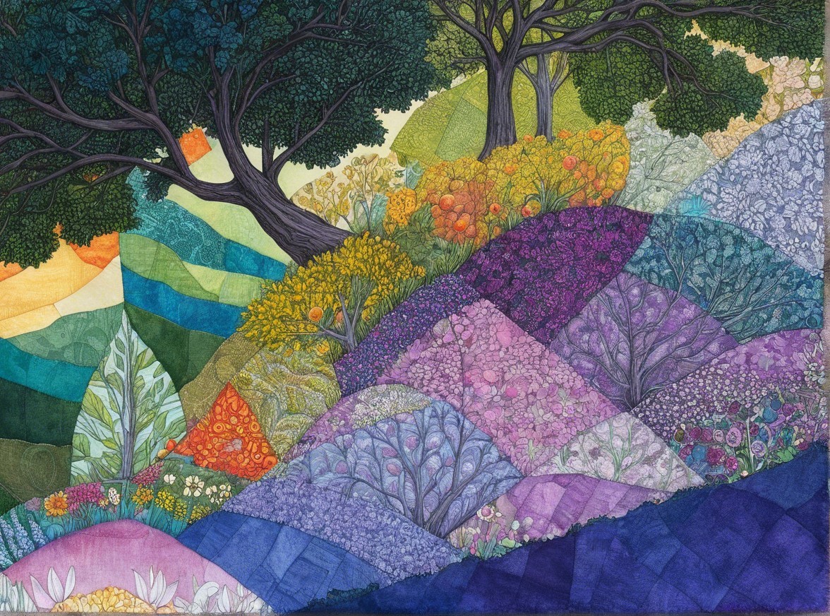 prompt by Debbie Eh?; evolved from a photo of my silk-dyeing project for "Sunset" dance props