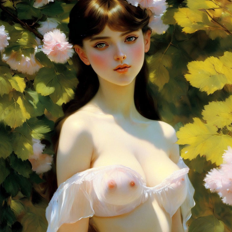 Digital Artwork: Young Woman Among Blooming Flowers