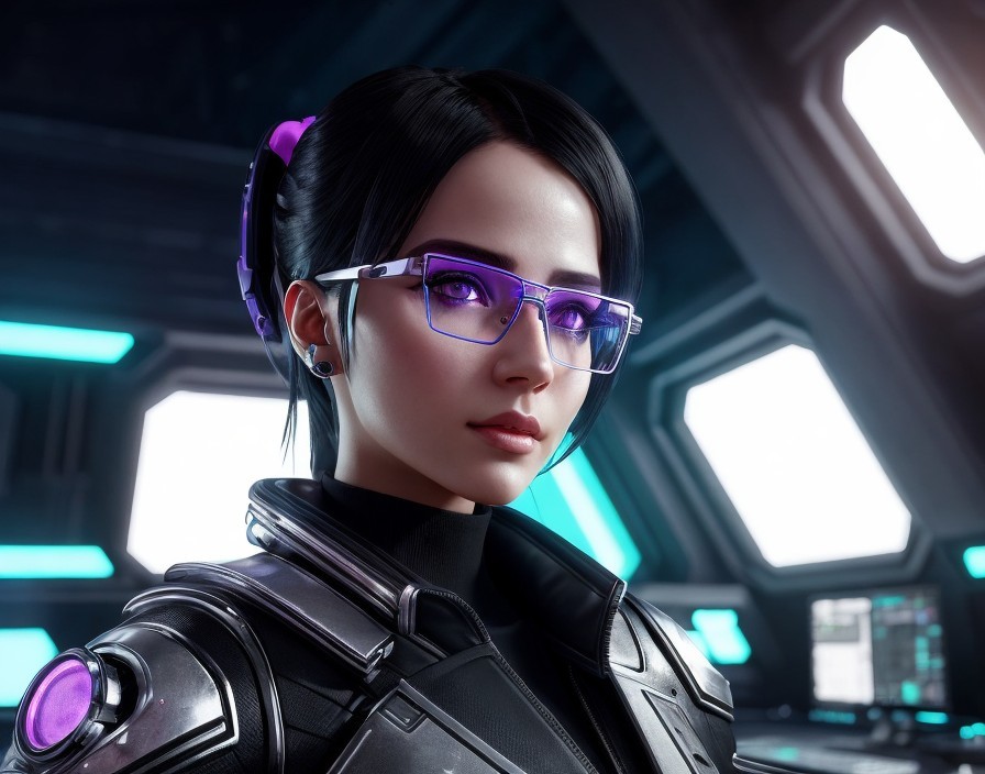 Futuristic cyberpunk girl with innovative glasses inspired avant.