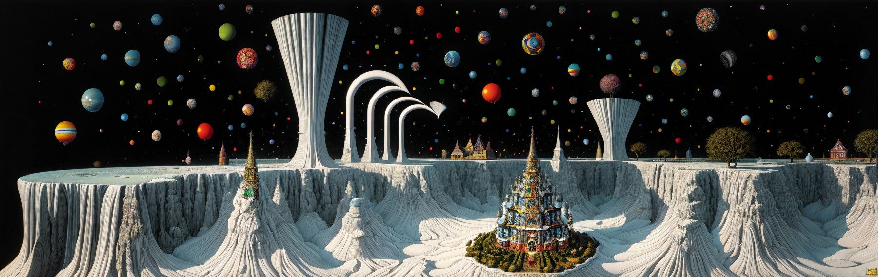 + Prompt:Jacek Yerka Digital Surrealist While Under the Influence of MDMA Psychedelic; Hyper-Maximalist, Digital Painting, Award Winning, Crisp Quality Cinematic Postprocessing, Painted On Black Velvet Canvas, UHD Resolution,
