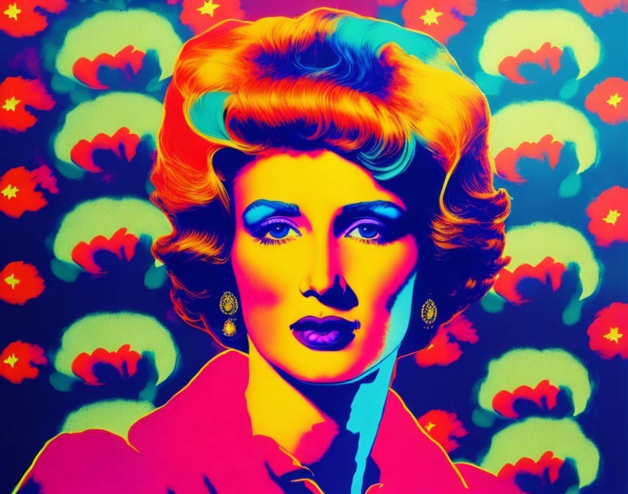 Vivid Pop Art Style Portrait of Woman with Pink, Blue, and Yellow Colors