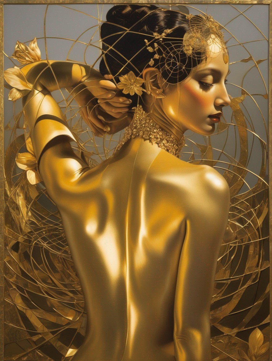 Dancer - Bauhaus, Red, White, Black, Gold - Glazer, Beardsley, Petrilli, Yerka. Arcimboldo, Bernini, Oscar Schlemmer Sacred Geometry, Fibonacci, Golden Ratio Modifiers: Double Exposure, In Silk Iridescent Texture: Beautiful Young Woman With Lily, With Gold Foil Detail, - In The Achaemenid Empire, 4th Century BC With Vivid Botanical Patterns From The Voynich Manuscript, Redon, Moreau, Yamamoto, Stettheimer, Matisse, Cranach The Elder