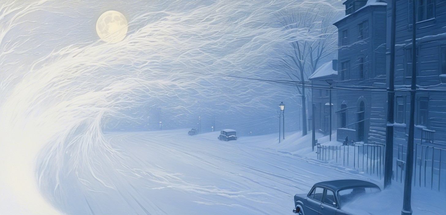Gusts of snow eddy through a neighborhood on a cold winter night, most of the residents are staying warm inside.