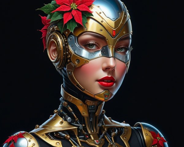 A regal figure adorned with elaborate attire and a striking headdress stands amidst surreal, towering structures. The painting blends elements of fantasy and symbolism, evoking a mystical atmosphere.