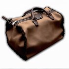 + Prompt:The central portion of the image is occupied by a detailed, three-dimensional rendering of a wool bag positioned centrally. The bag appears to be made of dark brown wool, and its frayed appearance indicates its age and use. A metal zipper runs along the top of the bag. Carry handles are positioned centrally at the top of the bag. The bag is set against a plain white background, highlighting its shape and shadows. Diffused lighting creates subtle accents on the surface and edges of the bag. The perspective is slightly elevated above eye level, allowing for a clear view of the bag's details. The overall minimalist atmosphere focuses on the bag.