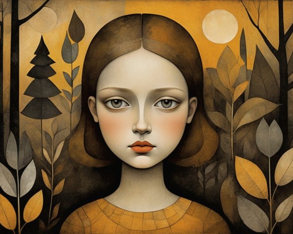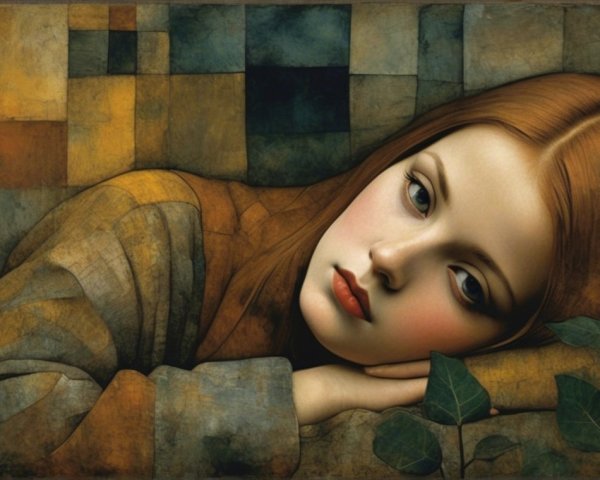 A digital artwork of a woman with flowing pink hair and a blue-gray dress, showcasing a mystical or fantasy-inspired theme.